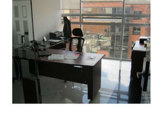 Este edificio de oficinas de varios pisos cuenta con amplias áreas de oficinas, una cafetería, terraza y auditorio en cada piso. Cuenta también con baños, sistema contra incendios, planta eléctrica y 50 parqueaderos repartidos en dos sótanos.
