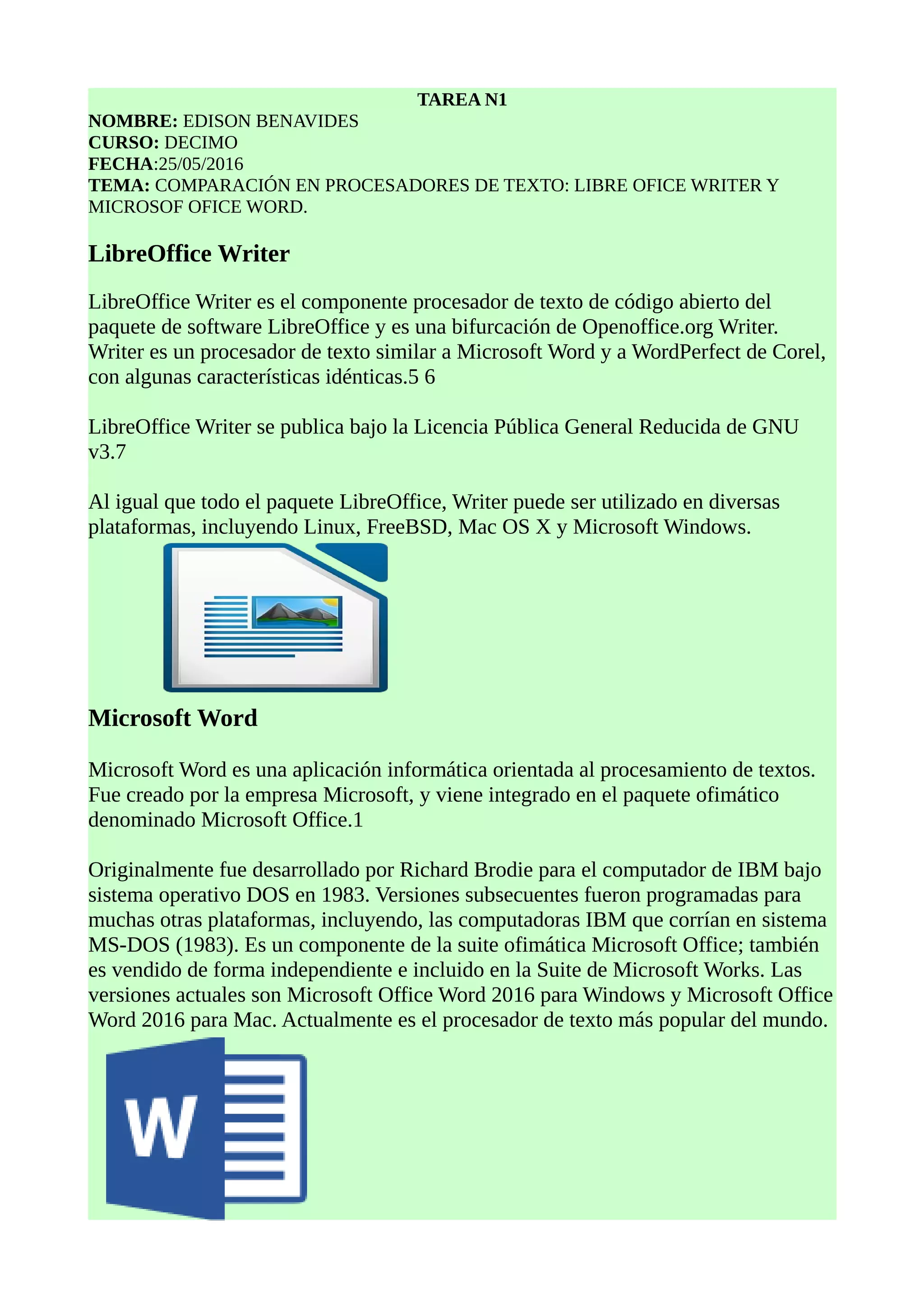 Este documento compara los procesadores de texto LibreOffice Writer y Microsoft Word. Ambos permiten guardar documentos en formato PDF e insertar encabezados, pies de página y números de página. También es posible deshacer y rehacer acciones, e insertar fórmulas y ecuaciones. Las principales diferencias son que Word permite más opciones de personalización de la barra de herramientas y tiene más funciones de acceso directo, mientras que algunas opciones como las imágenes prediseñadas solo están disponibles en Word.