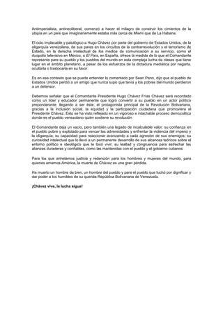 Hugo Chávez, el líder de la revolución bolivariana en Venezuela, falleció el 5 de marzo de 2013 a la edad de 58 años debido a cáncer. Chávez provenía de una familia pobre y aprendió sobre la injusticia y la desigualdad desde una edad temprana, lo que inspiró su liderazgo a favor de los pobres y en contra del imperialismo estadounidense. A lo largo de su carrera política y presidencia, Chávez implementó políticas sociales para reducir la pobreza y ampliar el