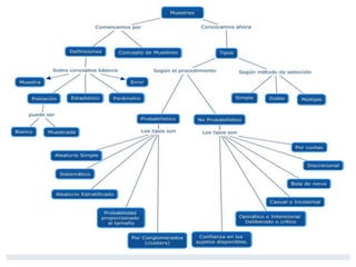 El documento define conceptos estadísticos fundamentales como población, muestra, variable, dato y parámetro. Explica que una población es un conjunto de personas u objetos con características comunes, mientras que una muestra es una subsección de la población seleccionada para su estudio. También diferencia entre variables cualitativas y cuantitativas.