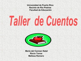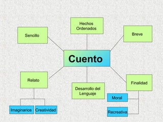 Este documento presenta información sobre la enseñanza de cuentos en la escuela primaria. Explica la importancia educativa de los cuentos y ofrece ejemplos de actividades para motivar a los estudiantes en la lectura y escritura de cuentos. También describe elementos clave de los cuentos como la estructura, personajes, trama y tipos de cuentos. El objetivo es ayudar a los maestros a enseñar efectivamente sobre cuentos a través de mini-lecciones y actividades prácticas.