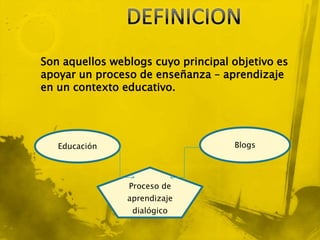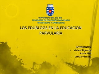 Este documento describe el uso de blogs educativos (edublogs) en la educación parvularia. Explica que los edublogs son sitios web que apoyan procesos de enseñanza y aprendizaje en un contexto educativo. Detalla algunas ventajas de los edublogs como su facilidad de uso, acceso gratuito y desde cualquier lugar. También discute cómo los edublogs pueden fomentar el debate, la creación de comunidades de aprendizaje y estimular a los estudiantes a escribir e intercambiar ideas.