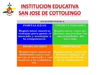 Este documento presenta la visión y misión de la Institución Educativa San Martín de Porres - CIRCA, cuyo objetivo es brindar una educación de calidad que forme personas con valores y capacidades para responder a los retos de la sociedad. También incluye el calendario escolar y cívico de la región con fechas importantes y festividades comunales a lo largo del año. Finalmente, muestra fotos de diferentes actividades realizadas en el aula y colegio como trabajos artísticos, deportivos, entrevistas y celebracion