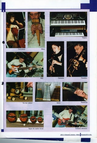 Este documento presenta una lista de temas musicales contenidos en el casete "La música, una aventura sonora". Incluye canciones populares y piezas clásicas de compositores como Beethoven y Schubert. La lista divide los temas en tres propuestas didácticas, enfocadas en la estructura formal, el pulso y tempo, y la diversidad de soportes musicales. El objetivo es que los docentes puedan utilizar estos temas en actividades del cuadernillo relacionadas con la música.