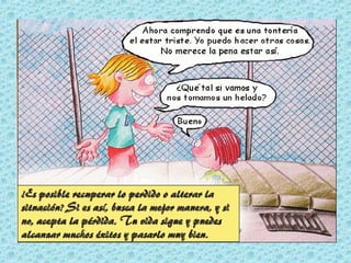 Este documento trata sobre la educación emocional y reconocer sentimientos. Explica que al aprender a reconocer nuestros propios sentimientos y los de los demás, así como las causas de los mismos, podremos comprenderlos y controlarlos mejor. También habla sobre cómo hacer frente a emociones como la tristeza, el miedo y la ira de manera constructiva.
