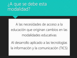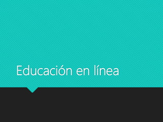 La educación en línea ofrece flexibilidad para que estudiantes y profesores interactúen sin importar su ubicación u hora, e integra innovaciones tecnológicas. Esto permite acceder a materiales y actividades desde cualquier lugar con internet, convirtiendo a los estudiantes en gestores de su propio tiempo. La educación en línea combina contenidos, actividades, nivel educativo, conocimientos previos, interacción y plataforma tecnológica a través de dispositivos conectados a internet.