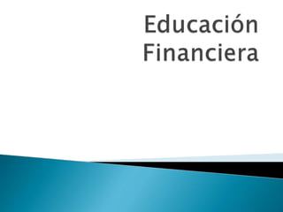 El documento habla sobre la educación financiera y su importancia para el desarrollo económico. Define la educación financiera, alfabetización financiera y capacidad financiera. Explica que la educación financiera promueve el ahorro, mejores decisiones financieras y bienestar familiar. Recomienda que la educación financiera sea gratuita, justa e impartida de manera eficiente en temas prioritarios como planificación financiera y administración de deudas.
