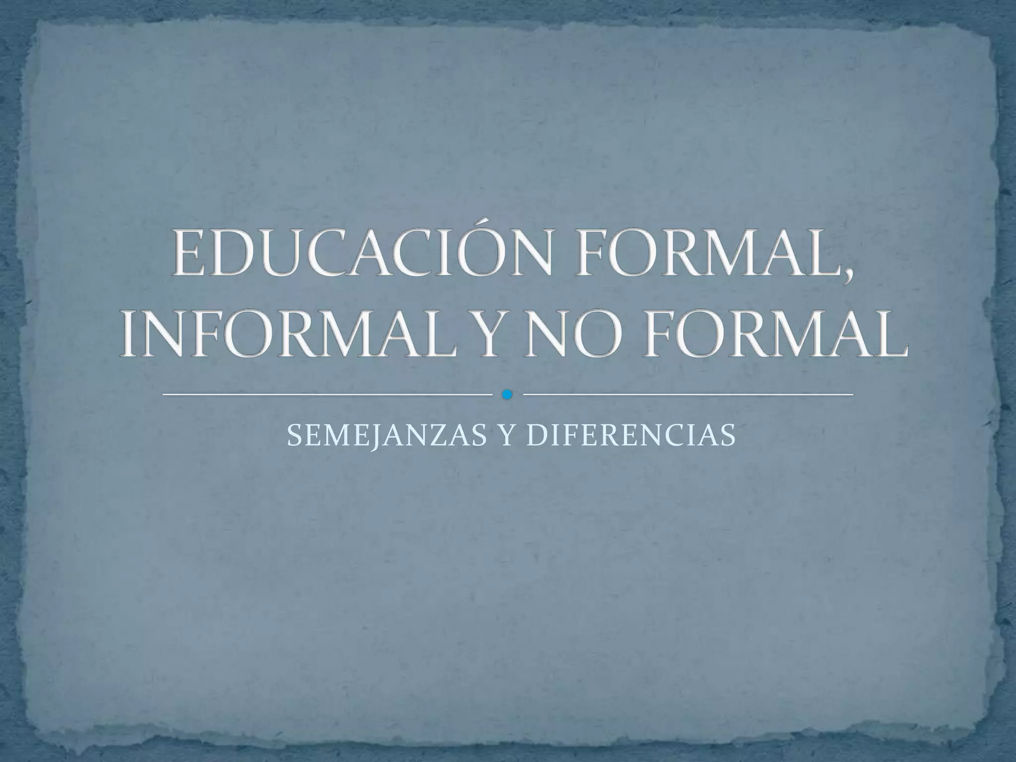Este documento compara y contrasta la educación formal, informal y no formal. Presenta un cuadro con las características y diferencias de cada tipo de educación, así como sus semejanzas. Concluye que a pesar de sus diferencias, todos los tipos de educación contribuyen de manera integral a la comprensión del proceso de enseñanza y aprendizaje, tanto dentro como fuera del aula.
