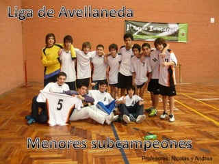 El documento resume los resultados de varios equipos juveniles de fútbol en la Liga Intercolegial de Avellaneda y los Torneos Juveniles Bonaerenses, donde los equipos Cadetes y Juveniles fueron campeones, los equipos Menores y Infantiles fueron subcampeones a nivel de liga, y los equipos Menores y Juveniles fueron campeones a nivel municipal, todos bajo la dirección de los profesores Nicolás y Andrea.