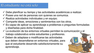 El documento aborda la importancia del aprendizaje colaborativo en entornos virtuales, subrayando la necesidad de una planificación adecuada y la utilización de herramientas para mejorar la comunicación entre estudiantes y profesores. Se destacan elementos clave como la interdependencia entre los miembros del grupo y la responsabilidad individual en el aprendizaje. También se menciona un modelo para optimizar los entornos de aprendizaje colaborativo, basado en la propiedad, responsabilidad y control de la tarea.