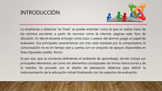 Este documento describe los aspectos fundamentales de la educación virtual. Explica que la educación virtual se lleva a cabo fuera de los salones de clase utilizando recursos como Internet. Luego describe los ambientes virtuales de aprendizaje, el diálogo didáctico, y los pasos para diseñar la planeación didáctica e implementar un modelo instruccional efectivo que incluye la prescripción, instrumentación, operación y evaluación. Finalmente, concluye que si bien la educación virtual ha crecido, aún se debe dar importancia a su planeación didá