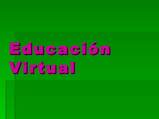 La educación virtual es un proceso de enseñanza-aprendizaje que utiliza las nuevas tecnologías. Tiene principios como la autoeducación, la desterritorialización y la virtualización. Ofrece ventajas como flexibilizar la información, promover la autonomía del estudiante y facilitar la formación grupal. Existen cuatro niveles de educación virtual, siendo el tercer nivel el considerado educación virtual al emplear plataformas virtuales.
