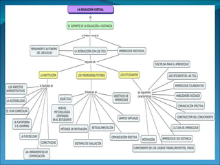 El documento discute cómo funciona el aprendizaje en la modalidad virtual, los tipos de aprendizaje que se pueden generar, las ventajas para los docentes y los aspectos a considerar sobre la brecha digital. Explica que en la modalidad virtual, los estudiantes tienen flexibilidad y autonomía en su aprendizaje con el apoyo de las TIC, y que se pueden generar aprendizajes dinámicos e interactivos aplicando experiencias del entorno. También señala que esta modalidad permite a los docentes explorar nuevas formas de ense