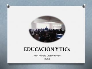 Este documento discute el uso de las tecnologías de la información y la comunicación (TICs) en la educación. Explica brevemente los antecedentes de las TICs y las define como recursos didácticos útiles. También contrasta la Web 1.0, que era principalmente de solo lectura con páginas estáticas, con la Web 2.0, que permite tanto la lectura como la escritura y el intercambio de contenido dinámico de manera más social.