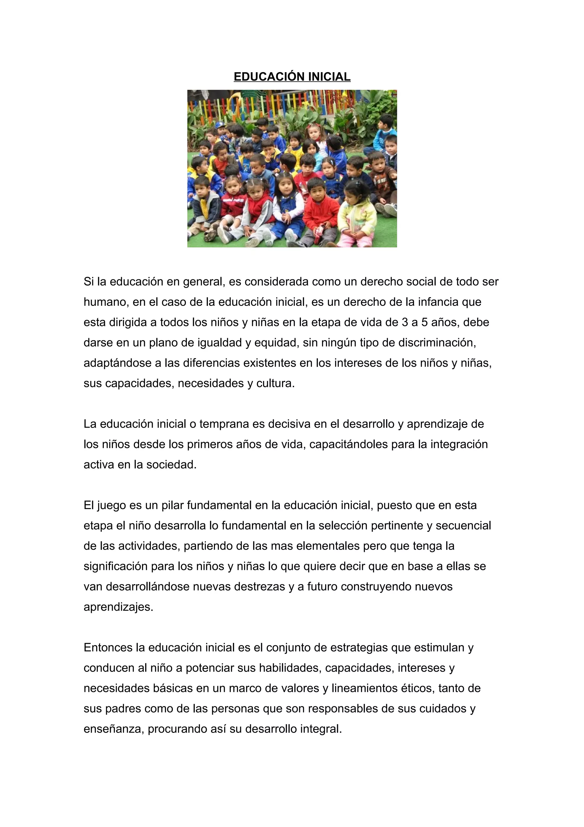 Este documento trata sobre la educación inicial en Ecuador. En 3 oraciones o menos: