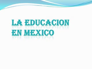 Este documento resume brevemente la situación educativa en México, destacando que la educación básica solo comprende 9 años de escolaridad a pesar de que todavía hay 1.2 millones de niños que no pueden asistir a la escuela. También señala que el 25% de las escuelas primarias son unitarias o multigrado y que aunque se ha destinado más gasto a la educación, el nivel de alfabetismo sigue siendo desproporcionado. Concluye que México se encuentra en un momento fundamental para su desarrollo