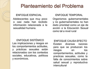 El documento resume los resultados de una encuesta sobre comportamientos, actitudes y prácticas sexuales de adolescentes en establecimientos educativos de Cantón Guamote, Ecuador. Los hallazgos principales son: 1) la mayoría denunciaría abuso sexual, aunque las mujeres tienen menos confianza para hablar de sexualidad; 2) existe poca educación sexual en el hogar; y 3) los adolescentes conocen métodos anticonceptivos pero confunden conceptos sobre sexualidad y enfermedades de transmisión sexual.