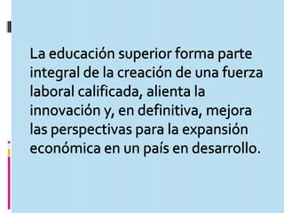 El documento describe las características clave de un sistema educativo efectivo, incluyendo una estructura diversificada, estándares bien definidos, financiamiento adecuado y flexibilidad.