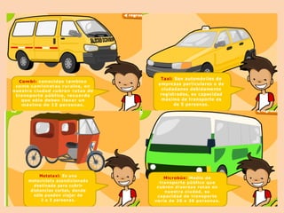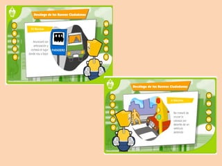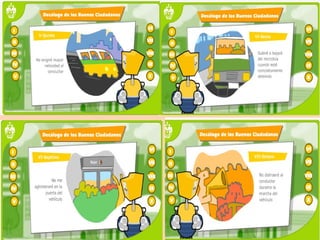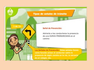 Este documento describe los diferentes elementos que componen una ciudad y la importancia de conocerlos para desplazarse de manera segura. Explica que las calles están divididas en zonas peatonales y calzadas, y destaca cruces peatonales, plazas, puentes y semáforos como elementos clave para la circulación coordinada de peatones y vehículos. Resalta la necesidad de que tanto peatones como conductores reconozcan estos elementos para prevenir accidentes.