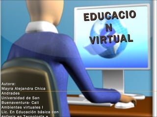 El documento describe la educación virtual como una forma de educación a distancia que tiene lugar en el ciberespacio y ofrece múltiples beneficios en comparación con la educación tradicional, como la flexibilidad de acceder a las lecciones desde cualquier lugar y en cualquier momento. Explica que para una implementación exitosa se requiere un cambio cultural y capacitación. Además, destaca tres métodos de enseñanza en la educación virtual: síncrono, asincrónico y una combinación de ambos.