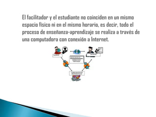 La educación virtual permite el aprendizaje flexible que se acomoda al horario del estudiante a través de una computadora e Internet, sin que el estudiante y el facilitador se encuentren en el mismo espacio físico ni horario. La educación virtual es útil para personas con limitaciones de tiempo o movilidad como madres, militares y empresarios, así como para quienes desean actualizar sus conocimientos.