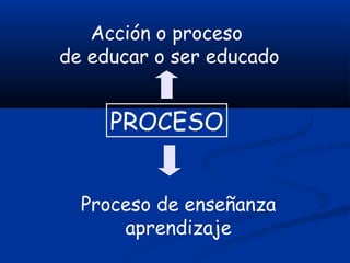 Este documento describe la educación a distancia, incluyendo su proceso, criterios para definirla y cómo se lleva a cabo a través de videos, voz, impresos y datos. Explica que requiere de estudiantes, docentes, personal de soporte y administradores trabajando juntos. También cubre por qué enseñar a distancia y los elementos claves para que el aprendizaje sea exitoso como la planificación del material y entrenamiento de los docentes.