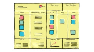 EduScrum es un marco basado en Scrum para la enseñanza que promueve el desarrollo de habilidades del siglo XXI en los estudiantes a través de un enfoque de aprendizaje centrado en proyectos. Los estudiantes trabajan en equipos multidisciplinarios autogestionados para lograr objetivos de aprendizaje definidos por el docente a través de sprints cortos. El docente supervisa el proceso y los estudiantes deciden cómo lograr los objetivos mediante acuerdos de trabajo y criterios de éxito. EduScrum