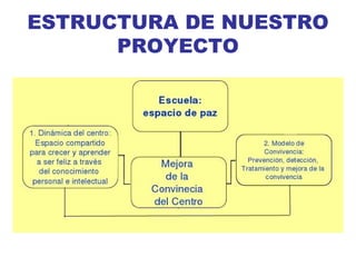 El documento resume las actividades realizadas durante el curso escolar 2014-2015 en el Colegio San Alberto Magno para cumplir con los objetivos de su proyecto "Escuela: Espacio de Paz". Se detallan programas y proyectos implementados en áreas como la convivencia democrática, el respeto a los mayores, la promoción de hábitos saludables y la integración en una civilización universal. El resumen general es que se lograron avances positivos en todos los objetivos gracias a las múltiples iniciativas desarrolladas a lo larg