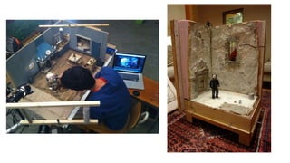 Este documento presenta instrucciones para un ejercicio de animación en stop motion. Los estudiantes deben escoger 3 principios de animación y crear un video de 30 a 45 segundos usando la técnica de su elección. La entrega incluye una reflexión y se subirá a Facebook para el 7 de septiembre. Además, proporciona enlaces de tutoriales de stop motion y recomendaciones sobre materiales y procesos de fabricación para la animación.