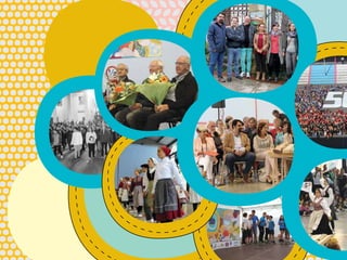 El documento presenta la información sobre la Ikastola Egape, una escuela pública en el País Vasco que celebra su 50 aniversario. Describe los objetivos del proyecto educativo de la escuela, como formar ciudadanos responsables y desarrollar las habilidades de cada estudiante. También resume algunos de los proyectos de la escuela, como los de lenguaje, valores, tecnología e innovación metodológica. La escuela cuenta con casi 600 estudiantes y ofrece varias actividades complementarias como cine en euskera, teatro y n