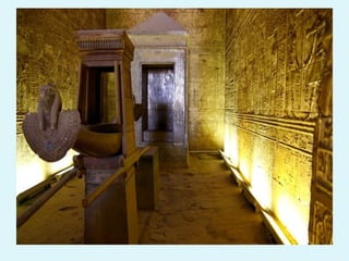 Este documento resume aspectos clave de la antigua cultura egipcia, incluyendo sus prácticas funerarias como las pirámides, mastabas y tumbas escalonadas, su sistema de escritura jeroglífica, y sus logros artísticos en escultura y pintura que retrataban a faraones, dioses y otros personajes con una característica postura frontal.