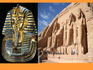 La arquitectura del Antiguo Egipto se caracterizó por el uso de grandes bloques de piedra, especialmente caliza, y por su estilo adintelado con sólidas columnas. Los principales tipos de construcciones fueron los complejos de pirámides, los templos y las tumbas realizadas en piedra, mientras que las viviendas se construían con ladrillos de barro. La decoración de estas estructuras incluía jeroglíficos, bajorrelieves y esculturas pintadas con vivos colores.