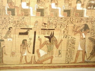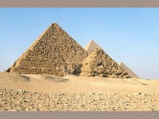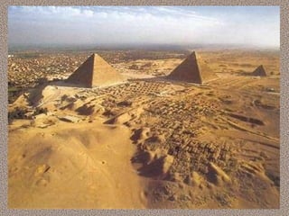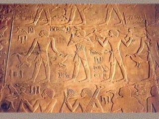 Egipto tenía un clima desértico pero el río Nilo lo hacía fértil. Los egipcios creaban arte complejo a pesar del entorno árido. El faraón gobernaba y la escritura era importante, mientras que las casas contenían muebles como apoyacabezas y camas.