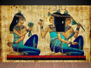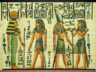 Este documento breve presenta información sobre Egipto, incluyendo un enlace de video de música egipcia para niños, una imagen de pinturas egipcias que muestran partes del cuerpo humano de frente y de perfil, y la palabra "jeroglífico".