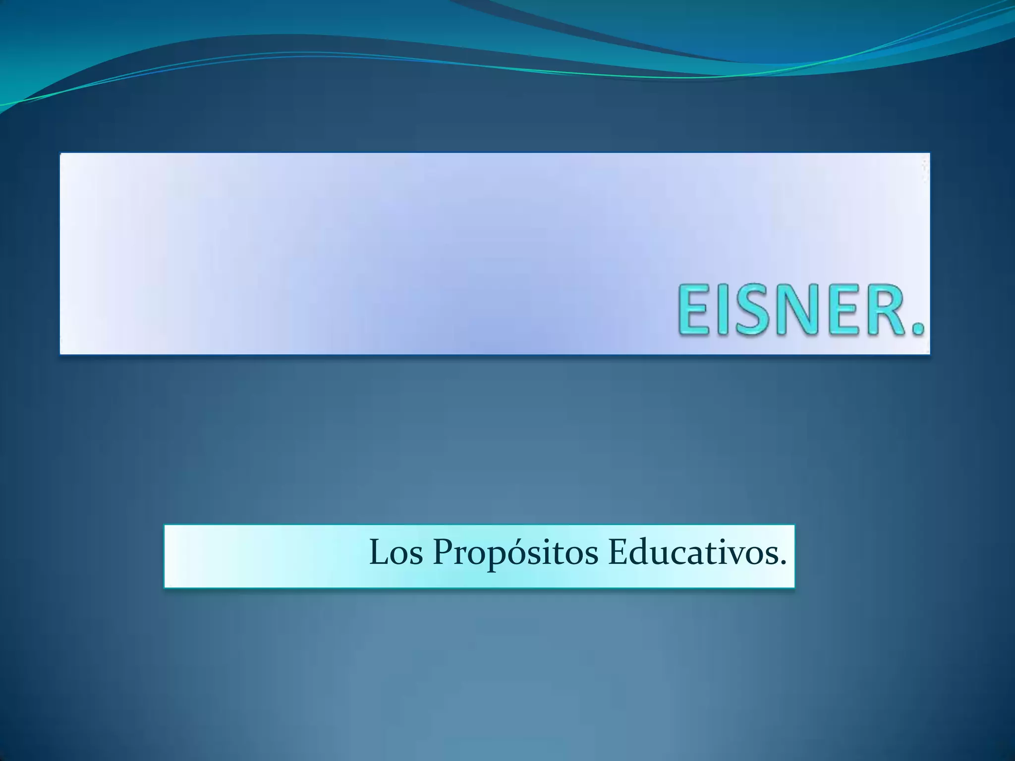 Los cinco propósitos educativos de Eisner son: 1) Enseñar para el mercado laboral, 2) Enseñar valores, 3) Transmitir cultura, 4) Enseñar sin valores e instruir en habilidades básicas, y 5) Sensibilizar sobre desigualdades. Los documentos muestran cómo estos propósitos se reflejan en la educación internacional, con un enfoque creciente en la tecnología para el futuro laboral y la participación de la escuela en la enseñanza de valores y la sensibilización