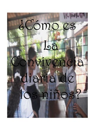 Este documento presenta el trabajo realizado por estudiantes del programa de formación de maestros de la Escuela Normal de Fatima sobre la convivencia diaria de los niños. El resumen describe el diagnóstico realizado en la Institución Educativa Policarpa Salavarrieta sobre las dificultades en la convivencia de los estudiantes y los objetivos planteados para fomentar valores como la tolerancia y el respeto a través de reflexiones y actividades.