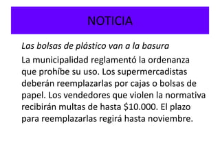 La municipalidad reglamentó una ordenanza que prohíbe el uso de bolsas de plástico en los supermercados y establece multas para los vendedores que la violen. El Concejo Deliberante debatió el tema y sancionó la ordenanza por unanimidad con el objetivo de reducir la contaminación, ya que las bolsas de plástico demoran 400 años en degradarse y son más contaminantes que las bolsas biodegradables o de papel.