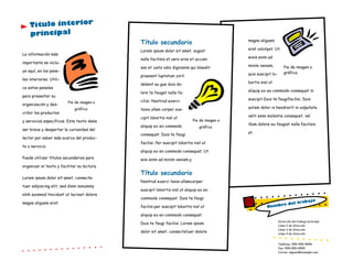 Este documento presenta una plantilla para crear un perfil de negocio que incluye secciones para el nombre de la empresa, información sobre los productos o servicios, contacto y paneles interiores para describir la organización y productos de manera más detallada. La plantilla provee un formato conciso para comunicar información clave sobre una empresa u organización.