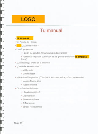 Ejemplo de contenido de un libro de Plan de Bienvenida real a una multinacional