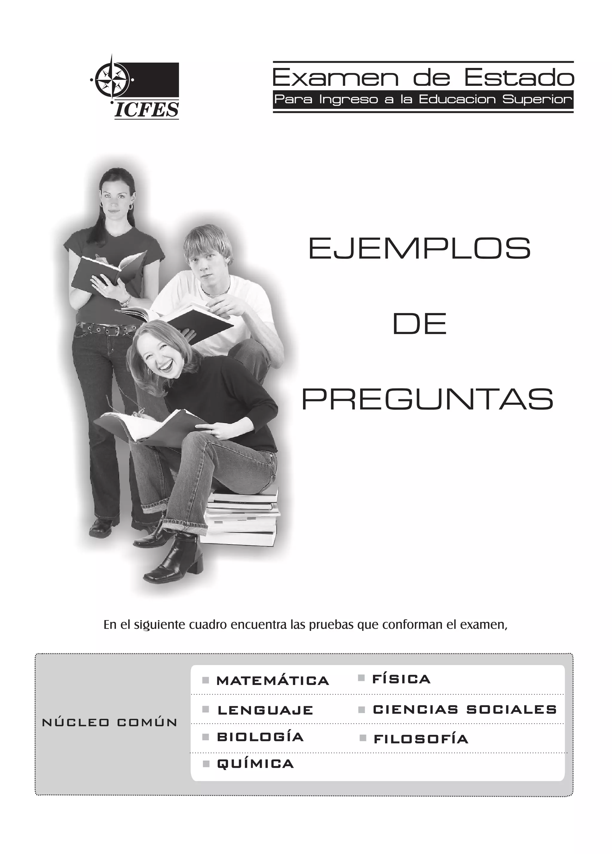 14 Ejemplos Web 35. Lea con atención la siguiente tabla. Población de las Provincias de Occidente discriminadas según composición étnica Nueva Granada Siglo XVIII Provincia Blanca Mestiza India Esclavizada Total Cartagena 12.656 11% 77.920 65% 20.928 18% 7.920 7% 119.647 Antioquia 8.893 18% 28.406 58% 2.514 5% 8.791 19% 48.604 Popayán 13.351 21% 22.979 36% 15.692 24% 12.444 19% 64.433 Chocó 335 2% 3.342 22% 5.687 37% 5.916 39% 15.286 De acuerdo con la tabla, una conclusión para el siglo XVIII es que A. la población blanca fue la mayoría en Antioquia y Popayán, dado que existían numerosas enco- miendas. B. la población esclavizada constituyó una minoría en Antioquia a partir del declive de la producción minera. C. la población mestiza era mayoritaria en el virreinato, de allí la progresiva disminución de la pobla- ción blanca e india. D. el occidente neogranadino era una zona despoblada, con respecto a las otras regiones del virreinato. PREGUNTAS DE SELECCIÓN MÚLTIPLE CON MÚLTIPLE RESPUESTA. ( TIPO IV ) Estas preguntas constan de un enunciado y cuatro opciones relacionadas con él, identifi- cadas con los números 1, 2, 3 y 4. Sólo dos de estas opciones responden correctamente el enunciado. Seleccione la respuesta correcta de acuerdo con el cuadro que aparece a continuación. Si 1 y 2 son correctas, rellene el óvalo A Si 2 y 3 son correctas, rellene el óvalo B Si 3 y 4 son correctas, rellene el óvalo C Si 2 y 4 son correctas, rellene el óvalo D 36. Para que un grupo de estudiantes de un colegio elabore un estudio ambiental, con el fin de mejo- rar las condiciones del establecimiento y su entorno, es recomendable . promover actividades científicas y eventos culturales con otras ciudades. . recuperar las áreas recreativas y la infraestructura del establecimiento. 3. apropiarse de los espacios públicos dentro y fuera del establecimiento. . elaborar estudios técnicos sobre la valorización del suelo en la zona.