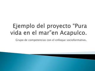 Este documento describe un proyecto de grupo que utilizó un enfoque socioformativo y competencias para mejorar el servicio al cliente en pequeñas empresas de playa a través de la planificación de actividades, la implementación de mecanismos para mejorar el servicio, la investigación de aspectos sociales, el uso de estadísticas de ventas, la elaboración de informes, la evaluación del desempeño, la mejora continua y la propuesta de acciones futuras.