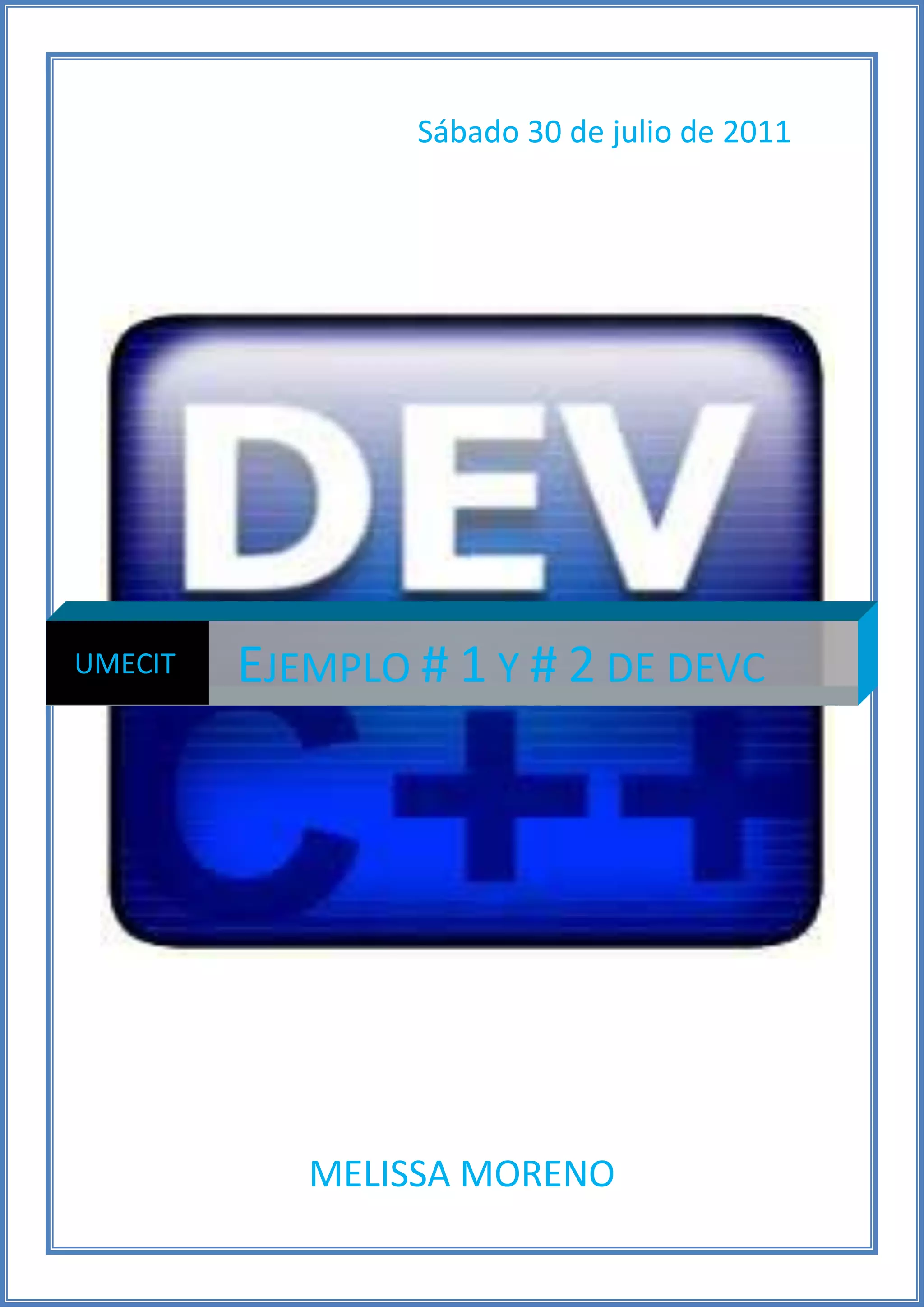 El documento presenta dos ejemplos de código C++. El primer ejemplo introduce dos números, realiza las operaciones de suma, resta, multiplicación y división entre ellos, e imprime los resultados. El segundo ejemplo da la bienvenida al usuario y ofrece dos opciones: suma o resta, pero no realiza ninguna operación.