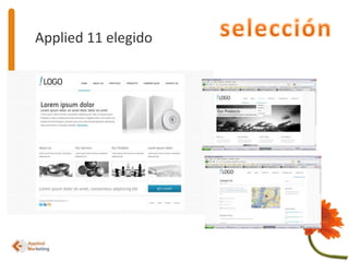 El documento presenta una lista de más de 50 plantillas de páginas web desarrolladas con HTML4, que incluyen diseños para sitios institucionales, de productos, corporativos, de noticias, blogs y más. Cada plantilla viene acompañada de una breve descripción y la leyenda "Pocas palabras. Muchas soluciones".