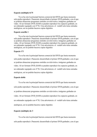 Panasonic desarrolló el primer grabador de DVD, rompiendo la barrera comercial del DVD que solo podía reproducir. El grabador permite almacenar programas de televisión e imágenes grabadas en video en formato DVD-RAM, los cuales pueden reproducirse en una computadora equipada con 4.7GB. Sin embargo, el grabador solo tiene entradas analógicas, por lo que no se podrán hacer copias digitales.