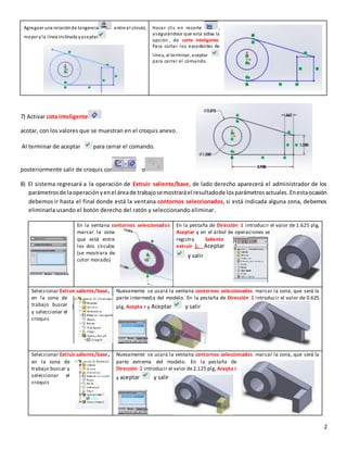 3) Se acotan los valores mostrados en el croquis y se sale del comando. Se extruyen tres salientes con diferentes valores de profundidad.