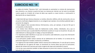 El documento describe las dificultades que tuvo el autor con un ejercicio de base de datos sobre un hotel. El autor pasó mucho tiempo tratando de descifrar las entidades, atributos y relaciones debido a que el enunciado no estaba claro. También tuvo problemas identificando qué tipo de información iba en el atributo "cédula" y puso "tipo de cédula" como placeholder.