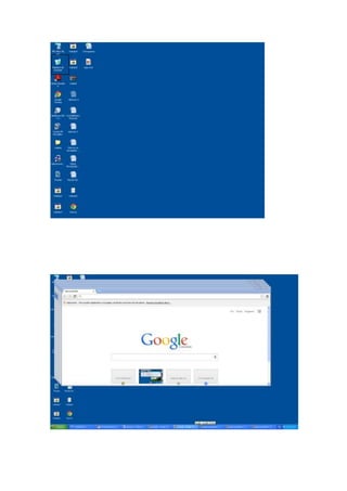 Este documento presenta diferentes opciones para organizar el escritorio de una computadora, incluyendo organizar iconos por nombre o automáticamente, mostrar el escritorio en mosaico horizontal o vertical, y diferentes puntos de configuración.