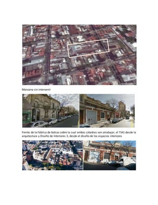 El documento presenta el alcance conceptual y las necesidades funcionales y programáticas para el diseño de interiores de un Club de Programadores en Parque Patricios. El club tendrá áreas para talleres, actividades comunitarias, servicios y un espacio para un tentempié. Los estudiantes deberán investigar casos similares y presentar un análisis para nutrir su propio proceso de diseño.