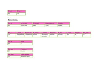 Este documento describe un ejercicio para diseñar una base de datos relacional que almacene información sobre zoos y especies animales. La base de datos incluirá datos sobre el nombre, ubicación, tamaño y presupuesto de cada zoo, así como el nombre científico y común, familia y estado de conservación de cada especie. Además almacenará datos de cada animal como su ID, especie, sexo, fecha de nacimiento, país de origen y continente.