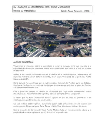 El documento propone re-funcionalizar el edificio "Empalme Sur" en Dique Cero, Puerto Madero para establecer la nueva "Sede Dique Cero de la Carrera Licenciatura en Prevención Vial y Transporte" de la Universidad de Morón. Se adaptaría el edificio existente al nuevo programa a través de modificaciones internas, preservando la estructura original. El proyecto pondría en valor el patrimonio arquitectónico y brindaría un espacio adecuado para el dictado de la carrera.